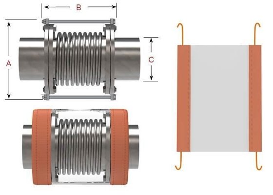 Der klare Mittelstreifen ermöglicht den Blick unter die Abschirmung, ohne das diese abgemommen werden muss. Somit haben sie stehts die Kontrolle über den Gummi- bzw. Metall-Faltenbalg des Kompensators. Wir fertigen für alle Bauformen von Kompensatoren Spritzschutzmanschetten nach Maß : Gummi-, Kunststoff-, Metall-Faltenbalg-, und Kompensatoren mit Verspannung.